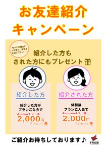 ただいまTRIZE明石店ではお友達紹介キャンペーンをさせていただいております。